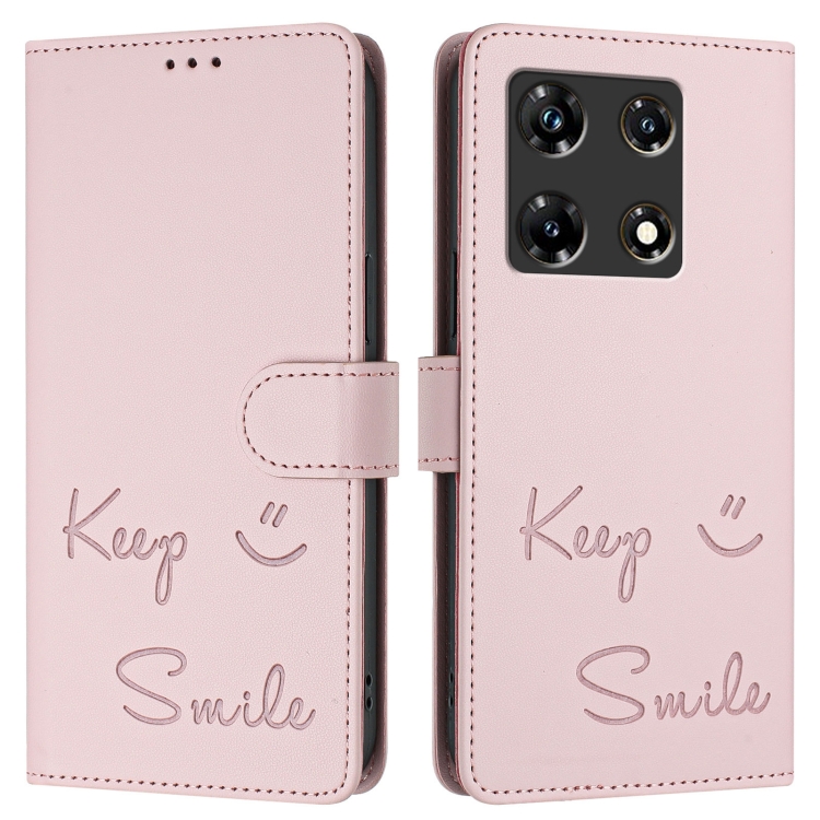 Funda de Cuero Rfid con Relieve Sonriente para Infinix Note 30 Pro y Note 30 5G (Rosa)