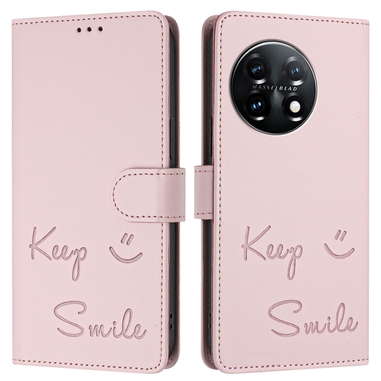 Funda de Cuero Rfid con Relieve Sonriente para OnePlus 11 (Rosa)