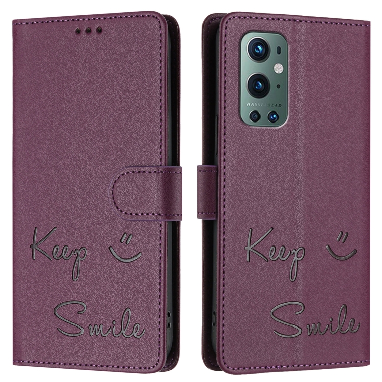 Funda de Cuero Rfid con Relieve Sonriente para OnePlus 9 Pro (Violeta)