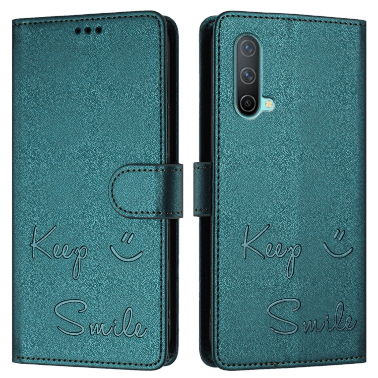 Funda de Cuero Rfid con Relieve Sonriente para OnePlus Nord Ce 5G (Verde Pavo Real)