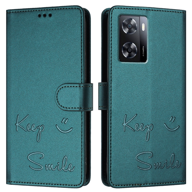 Funda de Cuero Rfid con Relieve Sonriente para OnePlus Nord N20 Se (Verde Pavo Real)