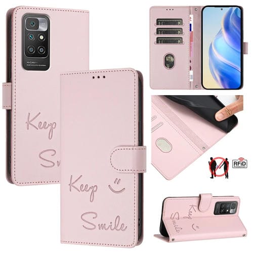 Funda de Cuero Rfid con Relieve Sonriente para Redmi 10 / Redmi 10 2022 (Rosa)