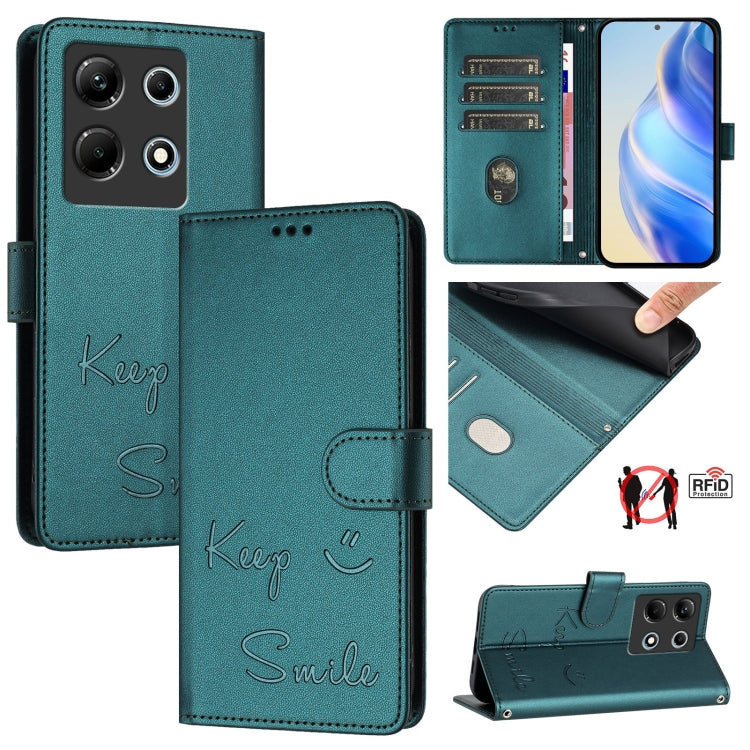 Funda de Cuero Rfid para Teléfono Infinix Note 30 4G X6833B con Relieve Sonriente (Verde Pavo Real)