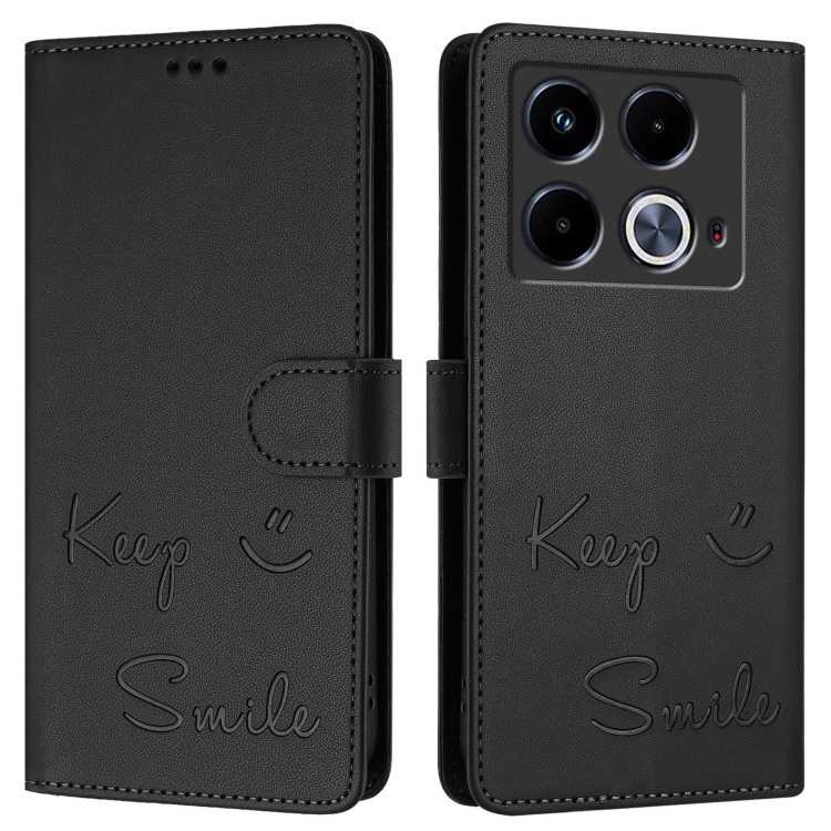 Funda de Cuero Rfid con Relieve Sonriente para Teléfono Infinix Note 40 5G (Negra)