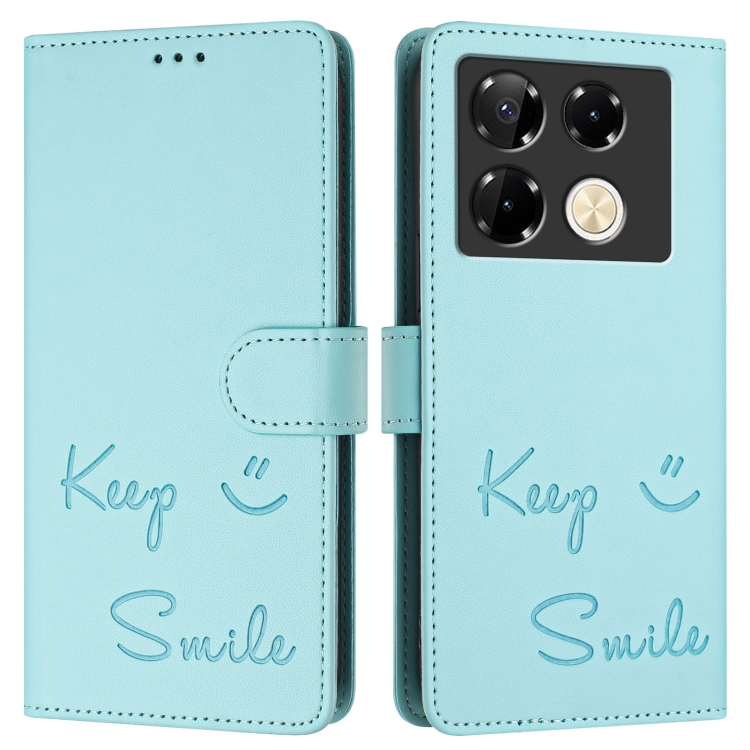 Funda de Cuero Rfid con Relieve Sonriente para Infinix Note 40 Pro 5G X6851 (Verde Menta)