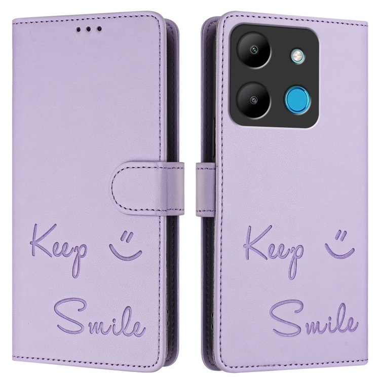 Funda de Cuero Rfid con Relieve Sonriente para Teléfono Infinix Smart 7 X6515 (Morado Claro)