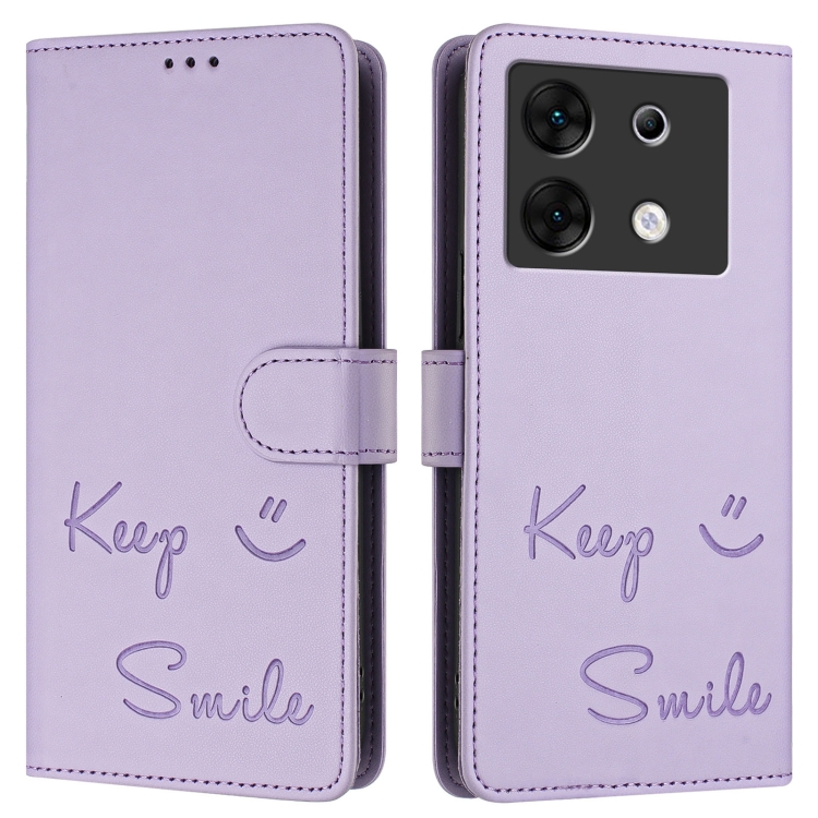 Funda de Cuero Rfid con Relieve Sonriente para Teléfono Infinix Zero 30 5G (Morado Claro)