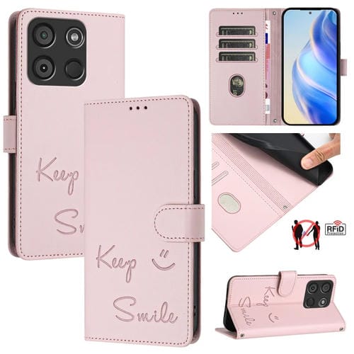 Funda de Cuero Rfid con Relieve Sonriente para Teléfono Itel A60/A60S (Rosa)