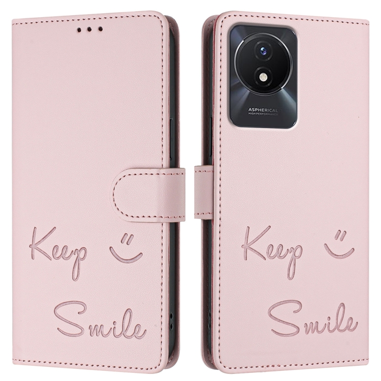 Funda de Cuero Rfid con Relieve Sonriente para Vivo Y11 2023/Y02T (Rosa)