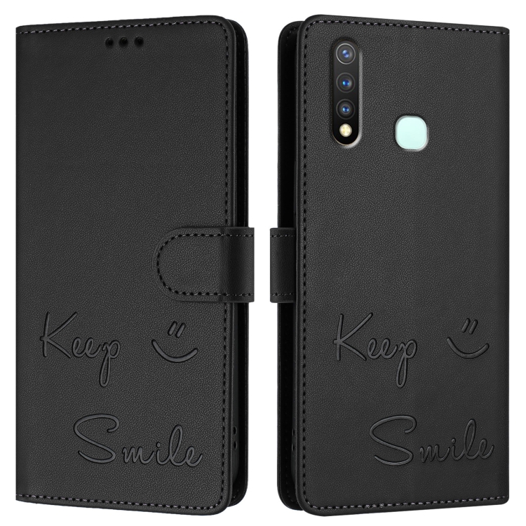 Funda de Cuero Rfid con Relieve Sonriente para Vivo Y19/U3/Y5S/Z5I/U20 (Negra)