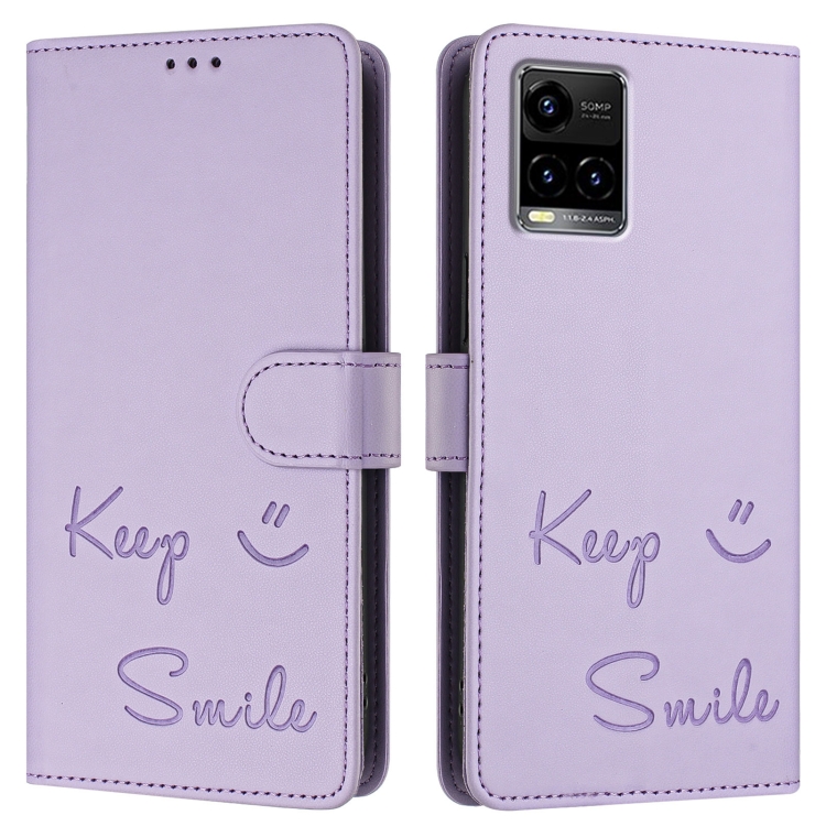 Funda de Cuero Rfid con Relieve Sonriente para Vivo Y21 2021/Y21S/Y21T (Morado Claro)