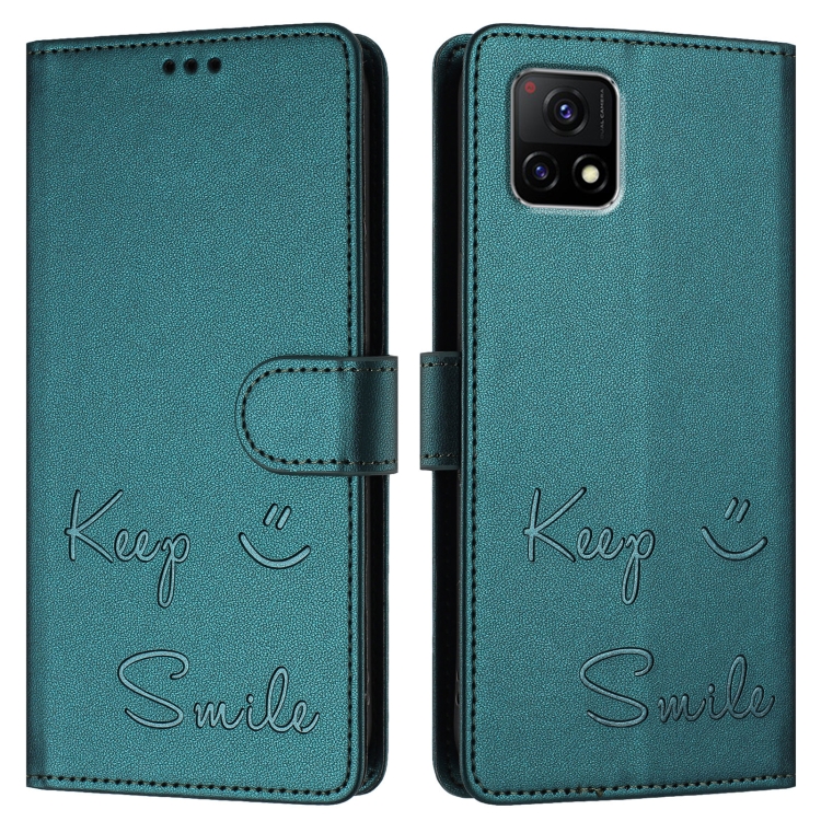Funda de Cuero Rfid con Relieve Sonriente para Vivo Y52S 5G/Iqoo U3 (Verde Pavo Real)