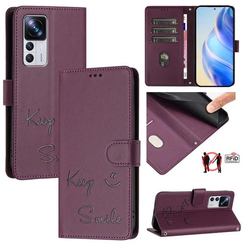 Funda de Cuero Rfid con Relieve Sonriente para Xiaomi 12T/12T Pro (Violeta)