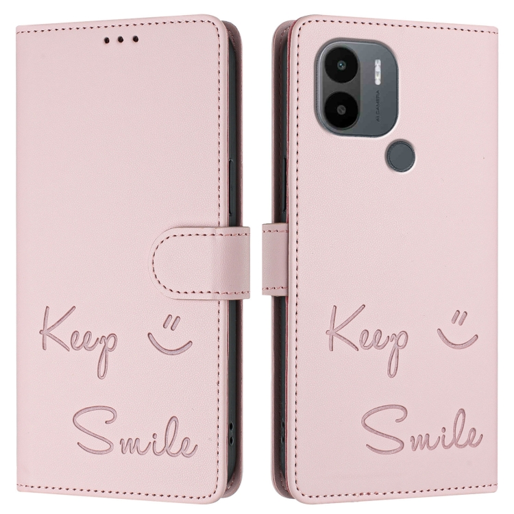 Funda de Cuero Rfid con Relieve Sonriente para Xiaomi Poco C51/C50 (Rosa)