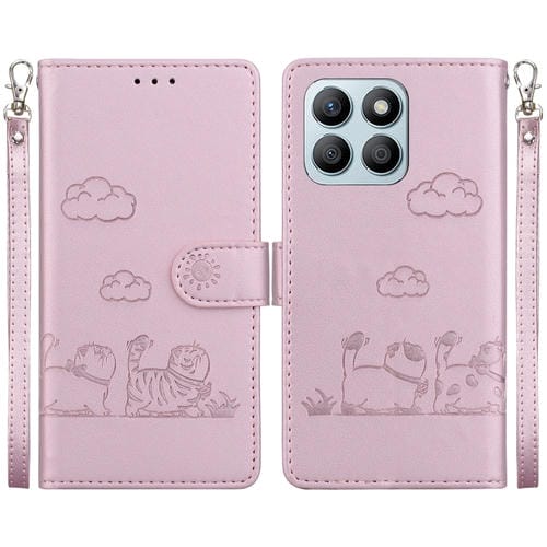 Funda de Cuero Rfid para Honor X8B con Diseño de Gatos (Oro Rosa)