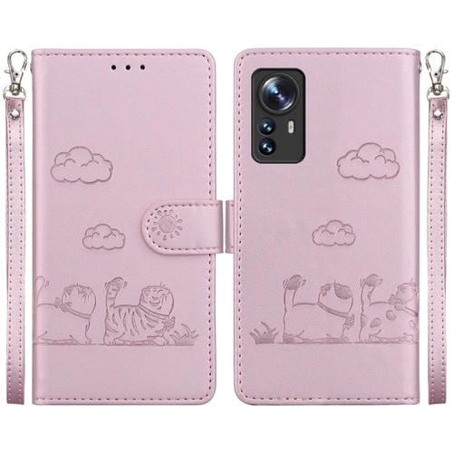 Funda de Cuero Rfid con Diseño de Gatos para Xiaomi 12/12X (Oro Rosa)