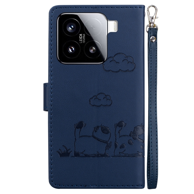 Funda De Cuero Rfid Con Diseño De Gatos Para Xiaomi 15 (Azul)