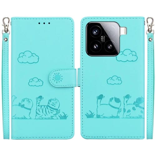 Funda De Cuero Rfid Con Diseño De Gatos Para Xiaomi 15 (Verde)