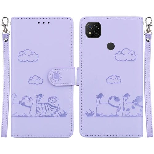 Funda de Cuero Rfid con Diseño de Gatos para Xiaomi Poco C31 (Morado)