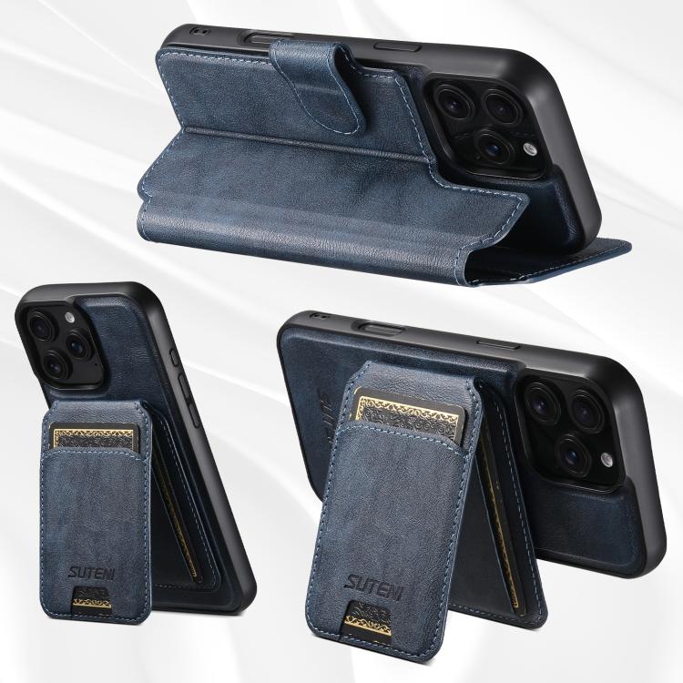 Funda de cuero Suteni Q05S2 3 en 1 con tapa vertical desmontable y función de cierre magnético para iPhone 15 (azul)