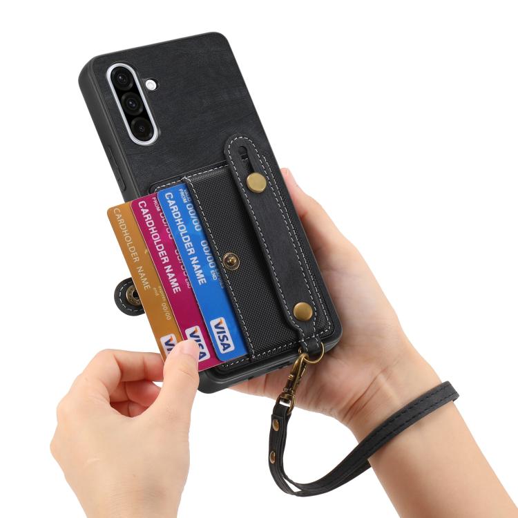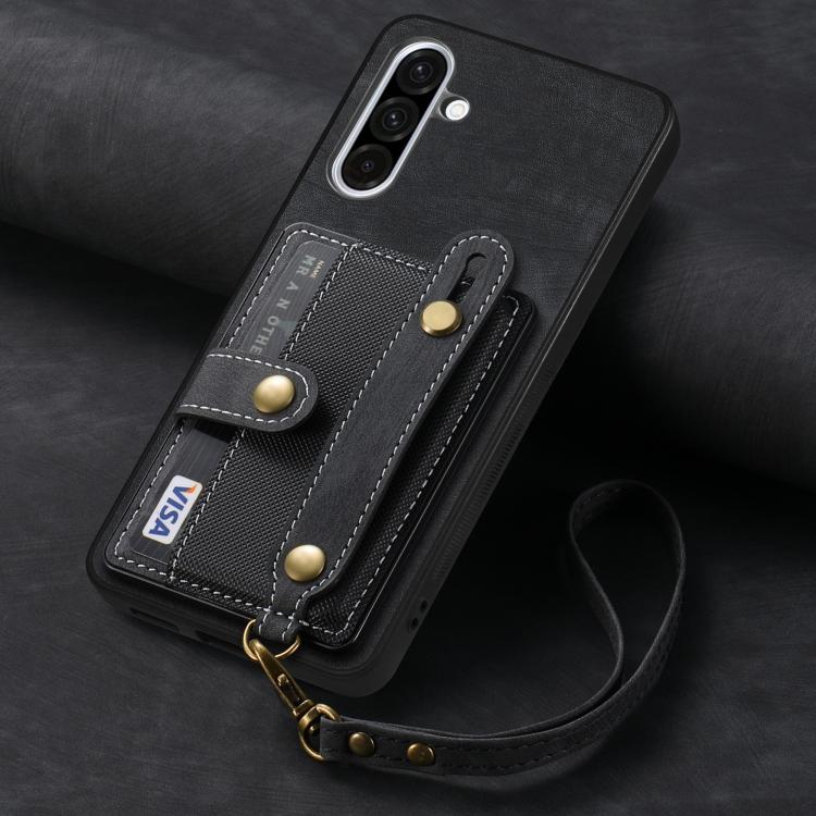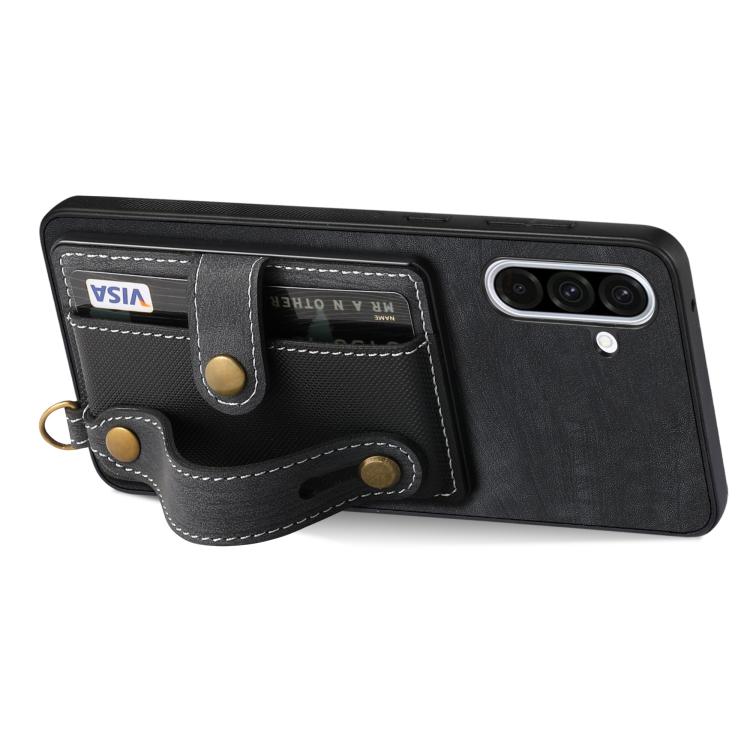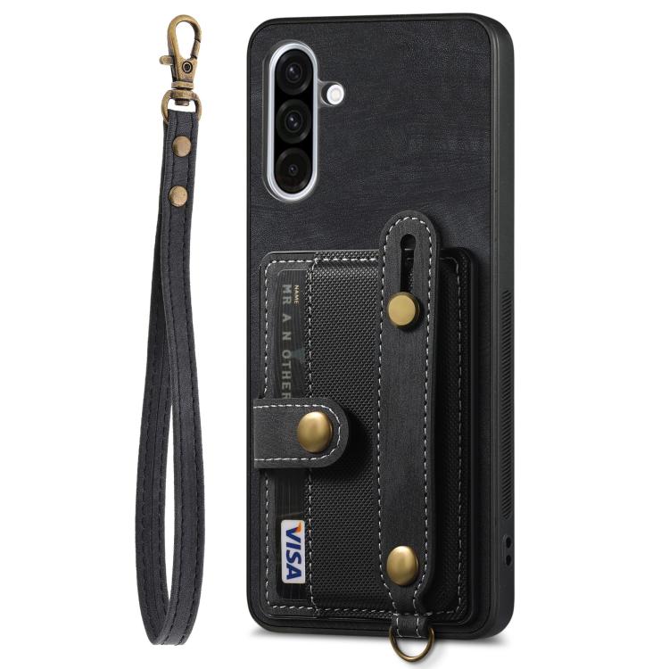 Funda de Cuero Tipo Billetera Samsung Galaxy A36 Correa Cruzada Retro (Negro)