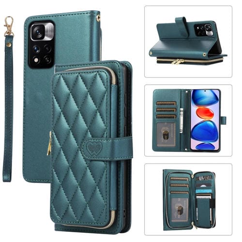 Funda de Cuero Tipo Billetera con Cremallera Completa y Diseño Rombal para Xiaomi 12T/12T Pro (Verde)