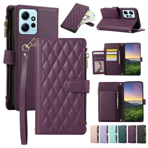 Funda de Cuero Tipo Billetera con Cremallera Rombal Global para Redmi Note 12 4G (Morado Oscuro)