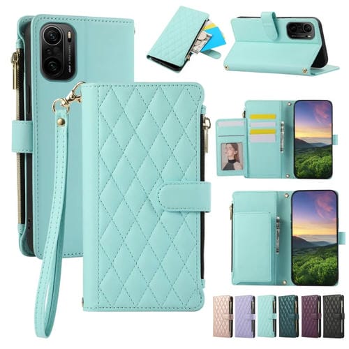 Funda de Cuero Tipo Billetera con Cremallera Rombal para Redmi K40 (Cian)