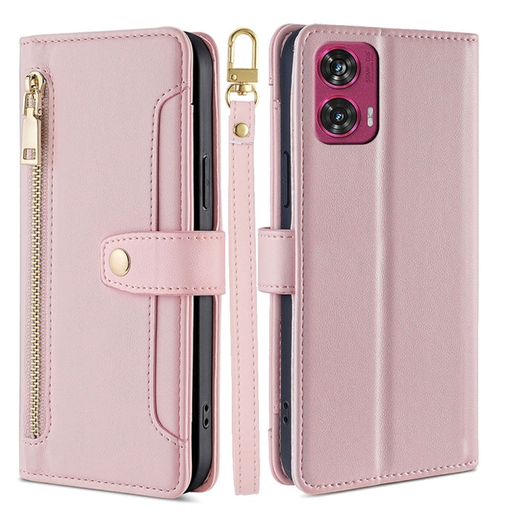 Funda de Cuero tipo Billetera con Cremallera y Textura de Oveja para Motorola Edge 50 Fusion 5G (Rosa)