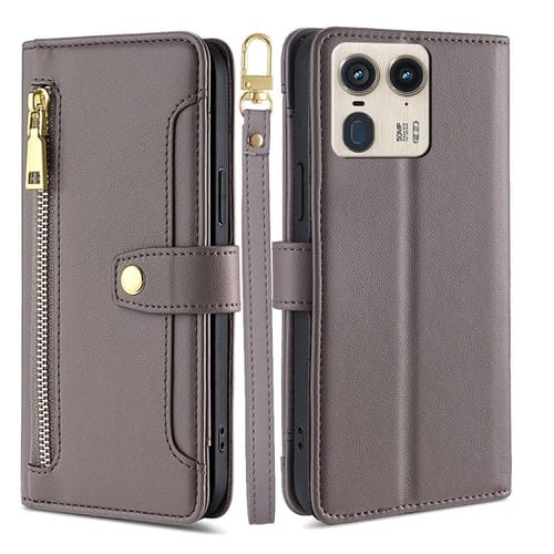 Funda de Cuero Tipo Billetera con Cremallera y Textura de Oveja para Motorola Edge 50 Ultra (Gris)