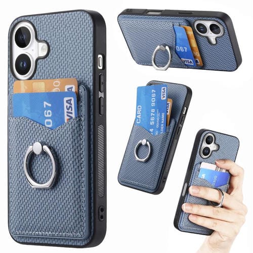 Funda de fibra de carbono con anillo para tarjeta para iPhone 17 (azul)