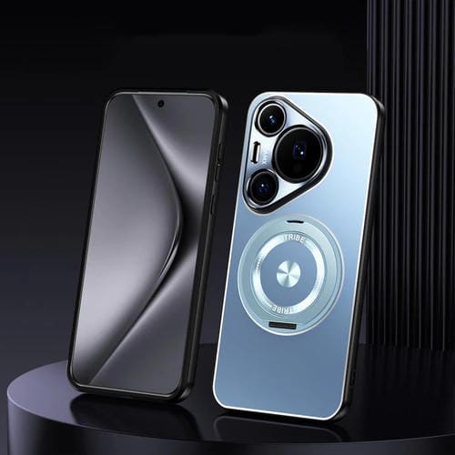 Funda de metal esmerilado con soporte giratorio para Huawei Pura 80 Pro+ 5G (azul)