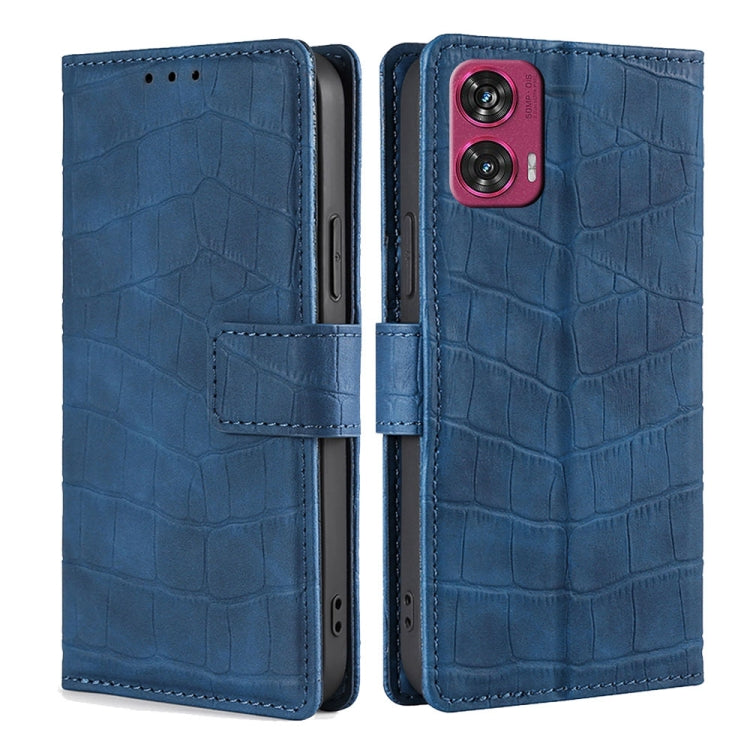 Funda de Piel para Motorola Edge 50 Fusion 5G con Cierre Magnético y Diseño de Cocodrilo (Azul)