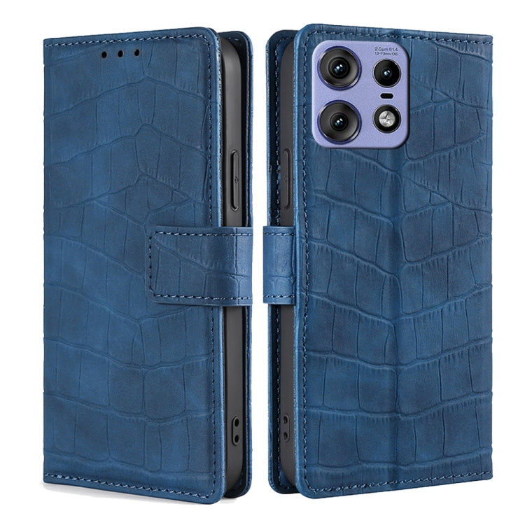 Funda de Piel con Cierre Magnético y Diseño de Cocodrilo para Motorola Edge 50 Pro 5G (Azul)
