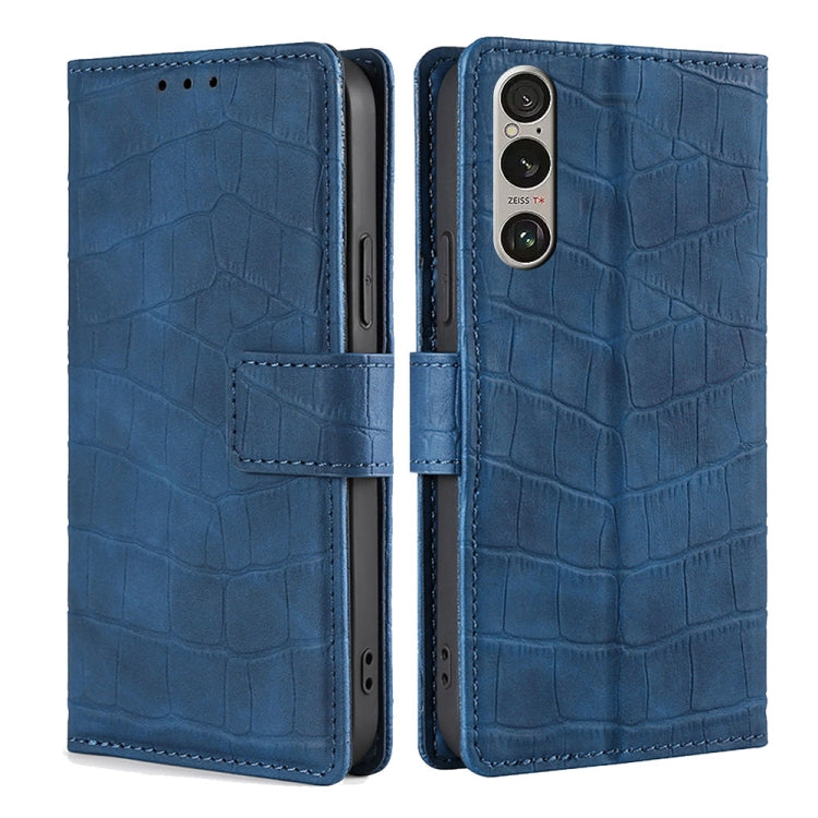 Funda de Piel con Cierre Magnético para Sony Xperia 1 Vi (Azul) con Tacto de Piel de Cocodrilo