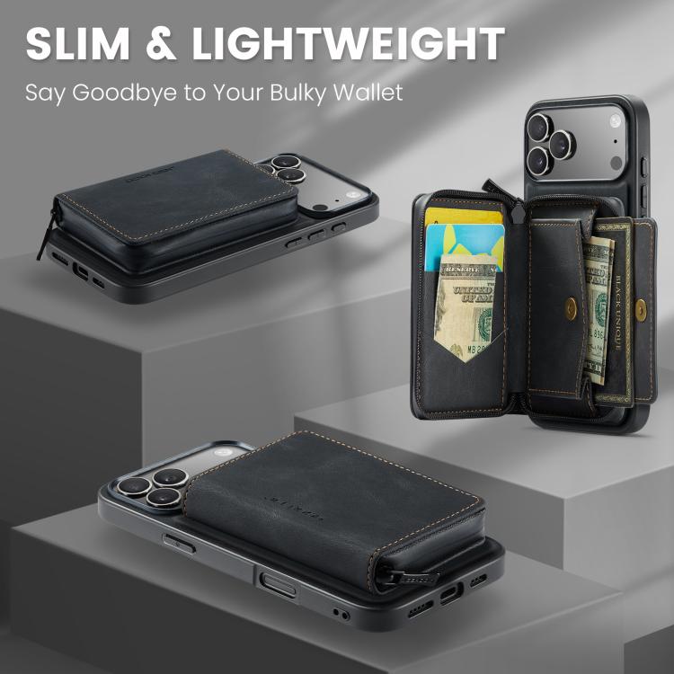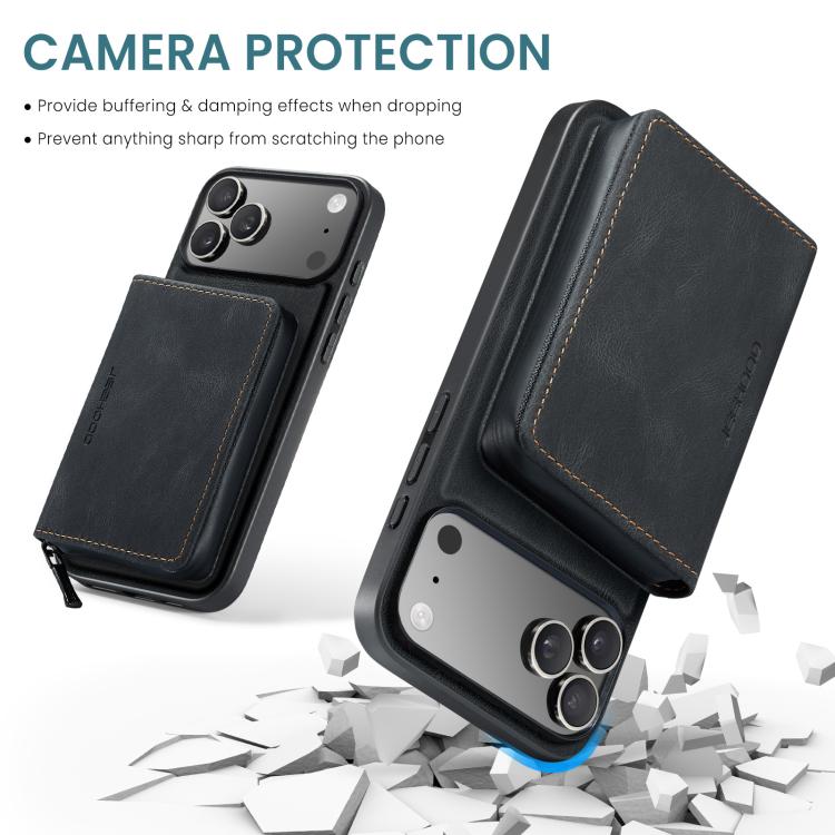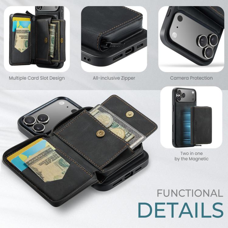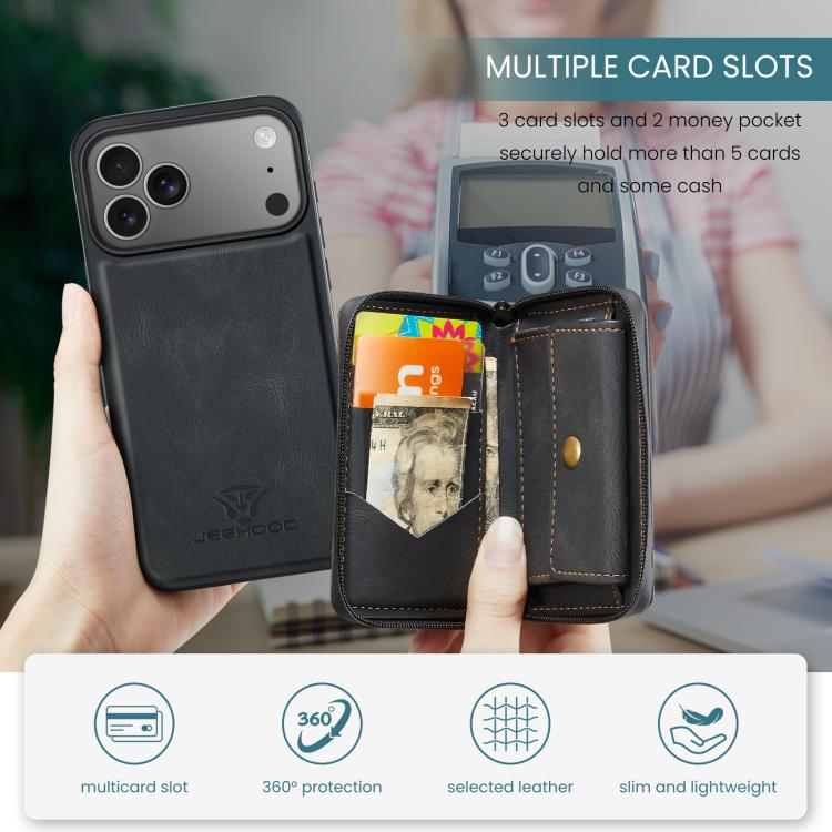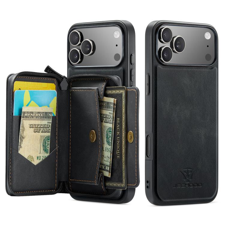Funda de piel con cremallera magnética horizontal tipo libro JEEHOOD J02 para iPhone 17 Pro Max (negra)