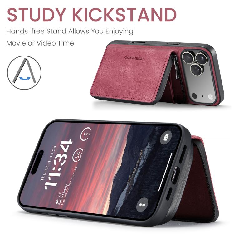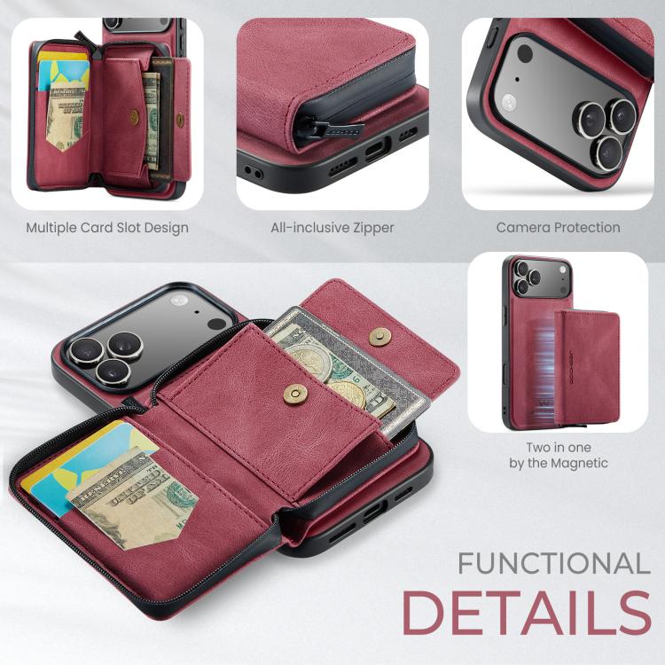 Funda de piel con cremallera magnética JEEHOOD J02 tipo libro horizontal para iPhone 17 Pro Max (Roja)