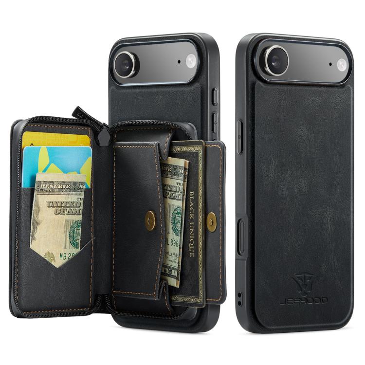 Funda de piel con cremallera magnética JEEHOOD J02 tipo libro horizontal para iPhone Air (negra)