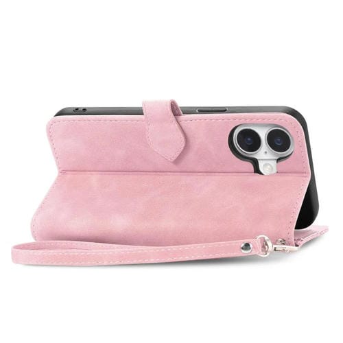 Funda de piel con cremallera y diseño floral en relieve para iPhone 17 (rosa)