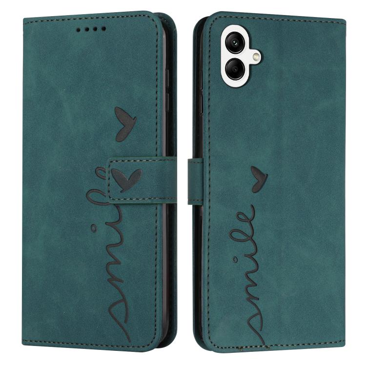 Funda de piel con diseño de corazón en relieve y cordón largo para Samsung Galaxy A07 4G (verde)