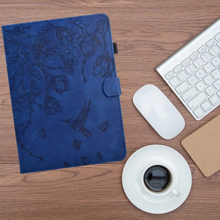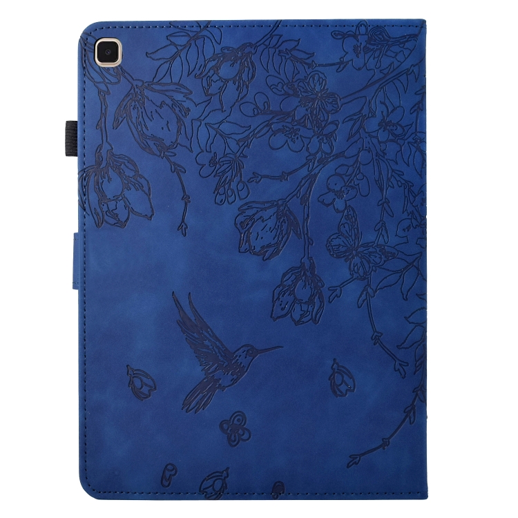 Funda para Tablet Samsung Galaxy Tab A7 Lite T220 Piel Estampado Flores y Pájaros (Azul Oscuro)