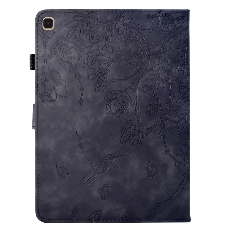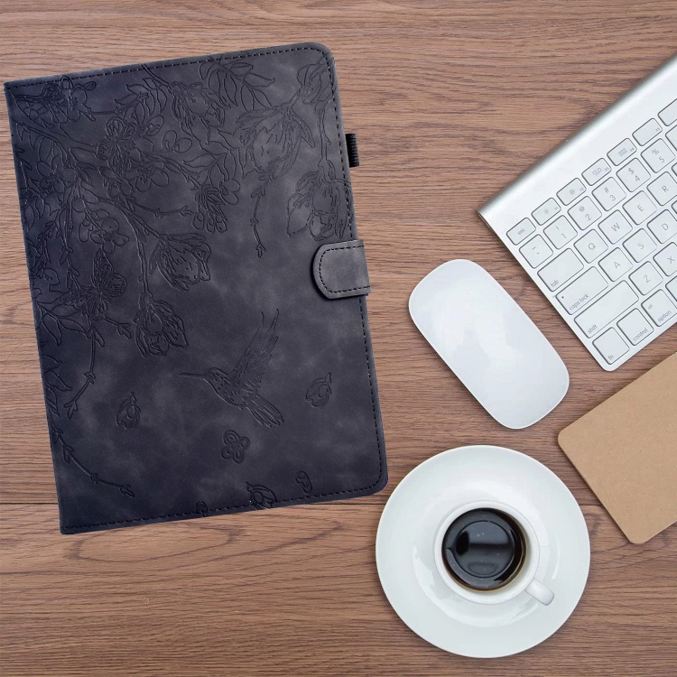 Funda para Tablet Samsung Galaxy Tab A7 Lite T220 de Piel con Estampado de Flores y Pájaros (Negra)