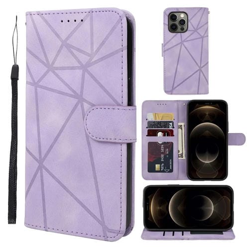 Étui en cuir à lignes géométriques soyeuses au toucher pour iPhone 12 Pro Max (violet)