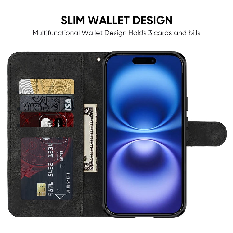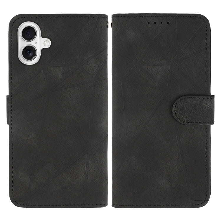 Funda de Piel para iPhone 16 Líneas Geométricas Tacto Sedoso (Negra)