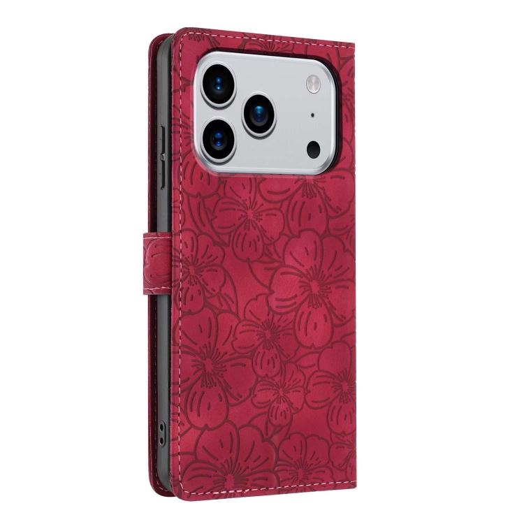 Funda de piel con relieve de cerezo para iPhone 17 Pro (roja)