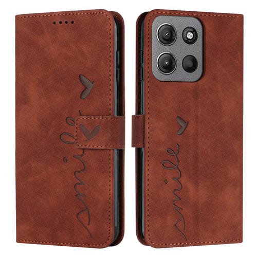 Funda de Piel con Relieve de Corazón y Cordón Largo para Motorola Moto G15 (Marrón)