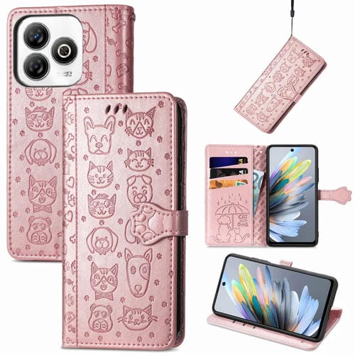 Funda de Piel con Relieve Gato y Perro para ZTE Blade A75 4G (Oro Rosa)