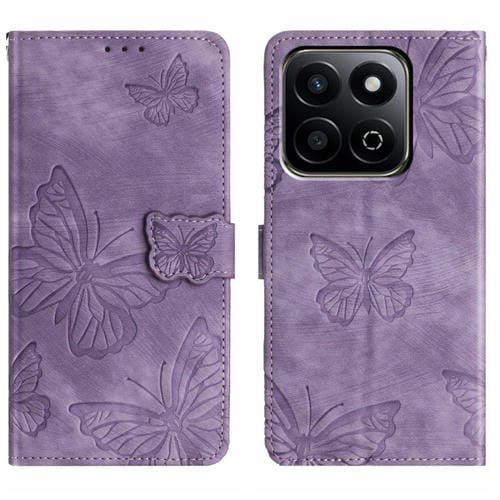 Funda de Piel con Relieve Mariposa para Honor X7C 4G/200 (Morado)