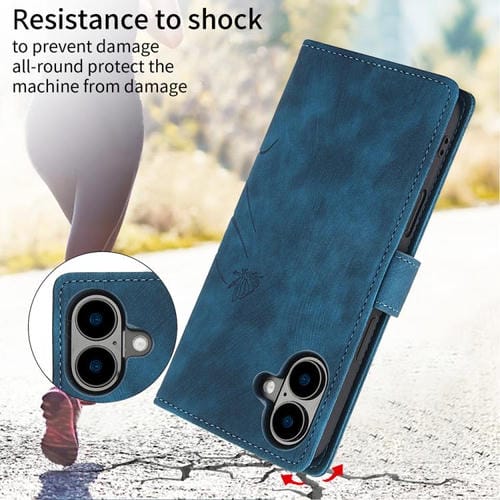 Funda de piel con relieve de mariposa y orquídea para iPhone 17 (azul)