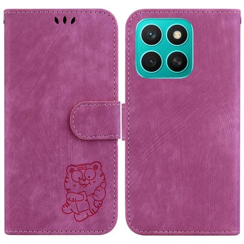Funda de Piel con Relieve de Tigre para Honor X8C 4G (Rosa)